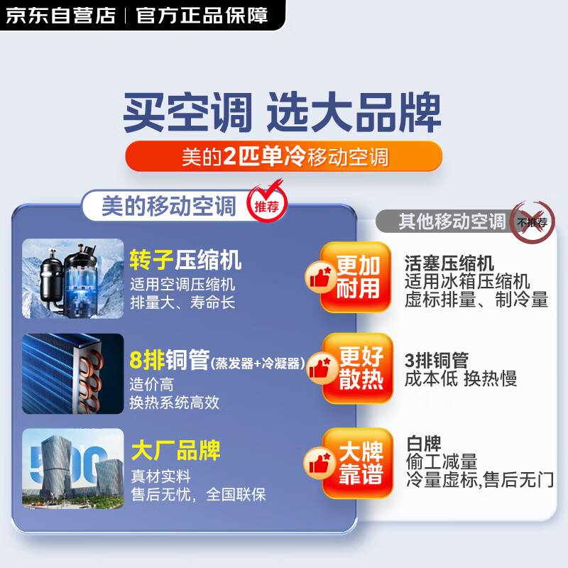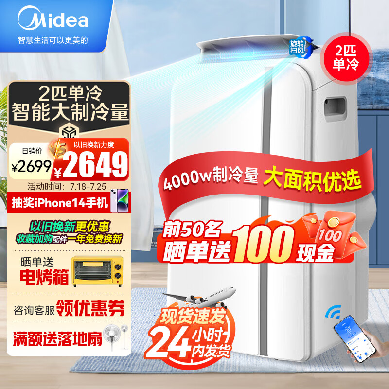 美的(Midea)移动空调2匹单冷 一体机空调无外机免安装立式空调 家用出租屋办公室WIFI智能操控 KY-40/N1Y-PD7价格:2699.00元!