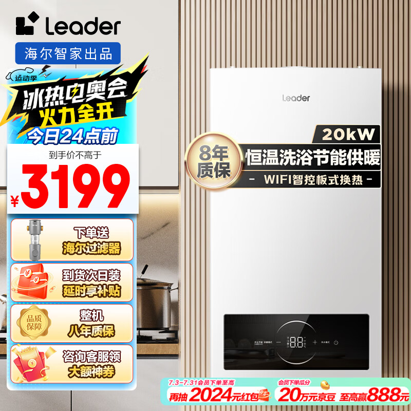 海尔智家出品Leader板换式壁挂炉天然气采暖炉热水器地暖生活水两用恒温以旧换新L1PB20-LA1价格:3199.00元!