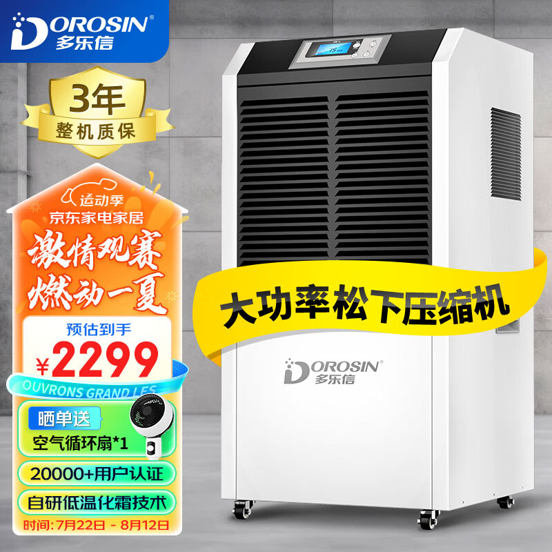 多乐信(DOROSIN)除湿机/抽湿机 150-350平方米 车间仓库地下室别墅工业大功率除湿器DR-1502L价格:2599.00元!