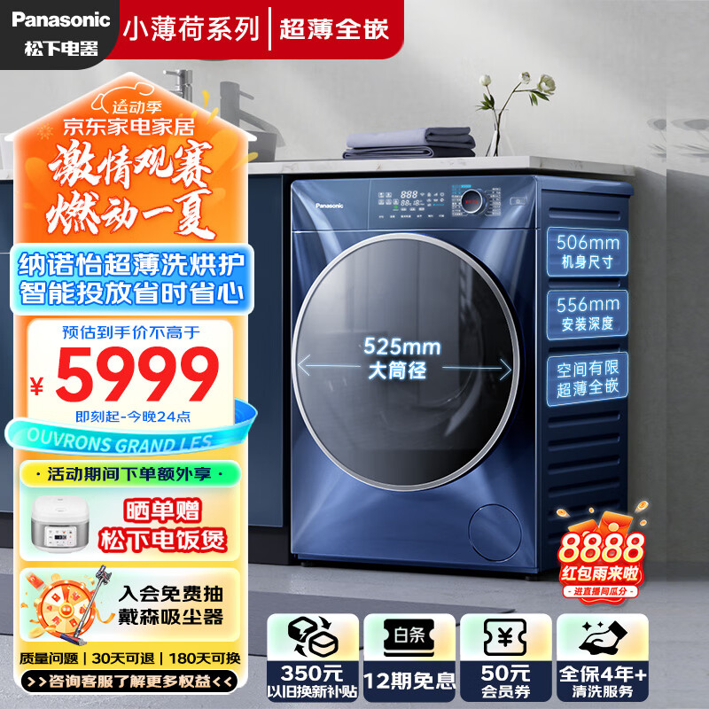 松下(Panasonic)滚筒洗衣机全自动 506超薄【小薄荷SD PP】10公斤天幕蓝洗烘一体户外服 智投纳诺怡XQG100-830AF价格:5999.00元!