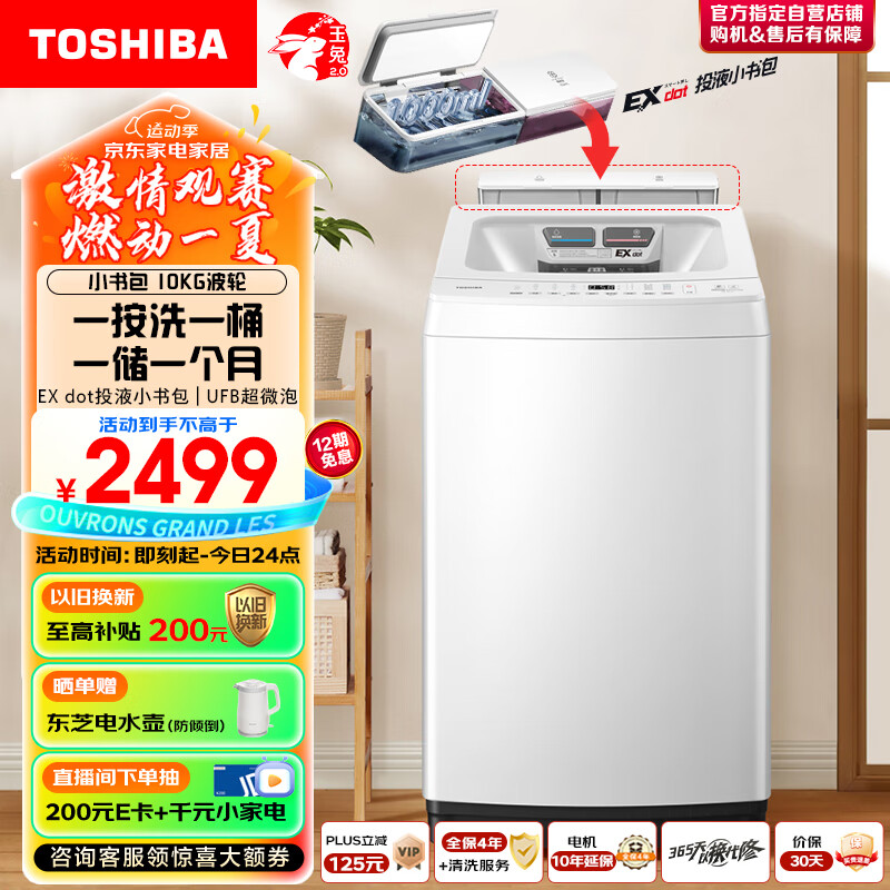 东芝(TOSHIBA)波轮洗衣机全自动 投液小书包白色 10公斤大容量 一按洗一桶 不弯腰设计 以旧换新DB-10T16价格:2499.00元!