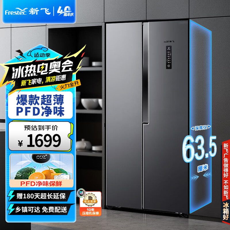 新飞(Frestec)450升超薄双变频一级对开门双开门冰箱超大容量多维风冷无霜电脑控温冰箱BCD-450WK9ET价格:1799.00元!