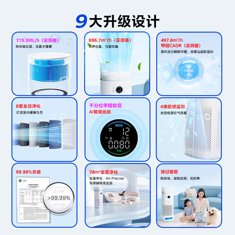 特色功能:甲醛数显,滤网更新提醒,自动托管