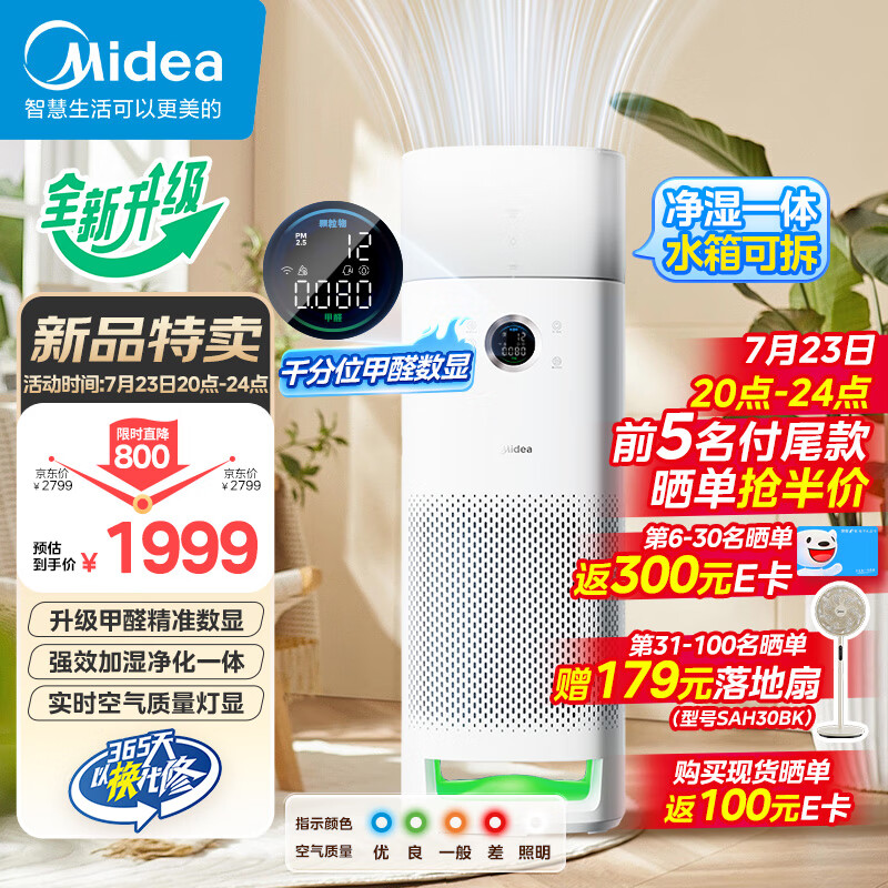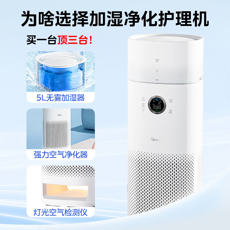 美的(Midea)空气净化器加湿器吸烟宠物猫毛除异味过敏源新风机【除甲醛高精度数显】KJ600F-LM1 Ultra价格:2699.00元!