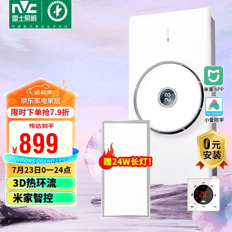 雷士(NVC)3D热环流米家智能环形浴霸暖风照明排气一体浴室集成吊顶Y300价格:1199.00元!