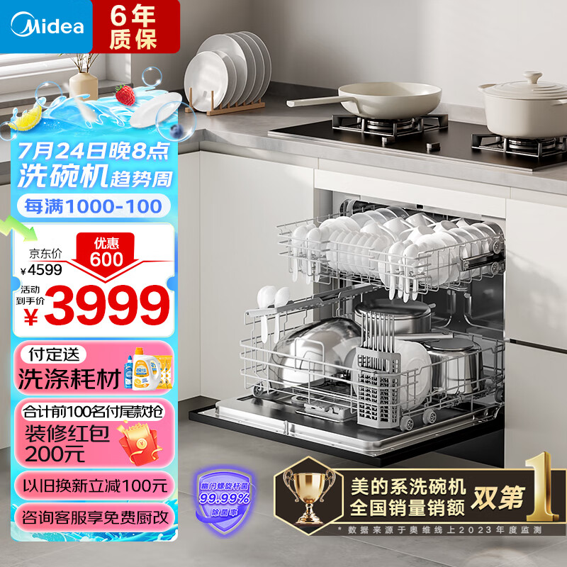 美的(Midea)小魔方洗碗机嵌入式台式家用灶下13套105℃热风烘干一级水效一键单消毒UV灭菌洗消一体机UX Magic价格:4399.00元!