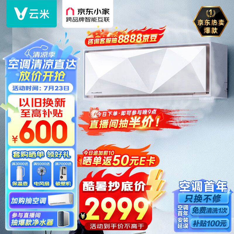云米(VIOMI)1.5匹智能家电 变频冷暖Space E 4D智能AI全域风 以旧换新 壁挂式挂机空调KFRd-35GW/Y2QX2-A1价格:2999.00元!