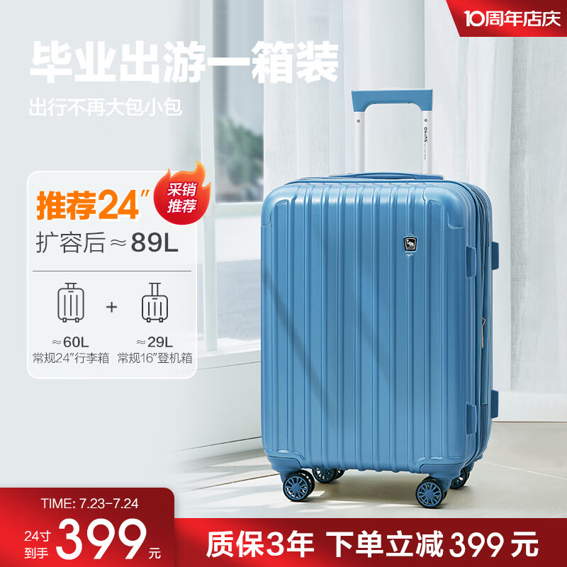 爱华仕行李箱女拉杆箱男旅行箱大容量密码箱24英寸可扩展学生箱雾霾蓝价格:798.00元!
