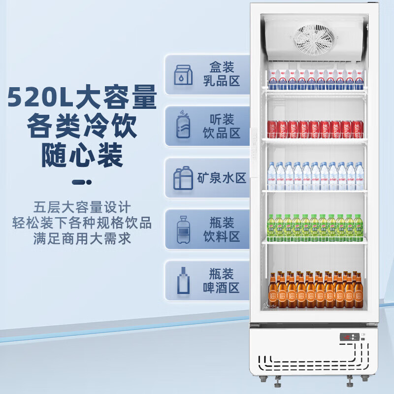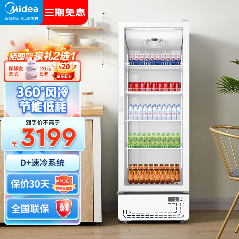 美的商用展示柜520升酒水展示柜冰柜冷藏保鲜风冷无霜家用冷柜商用饮料柜冰箱SC-520GWMA(Q)价格:3299.00元!