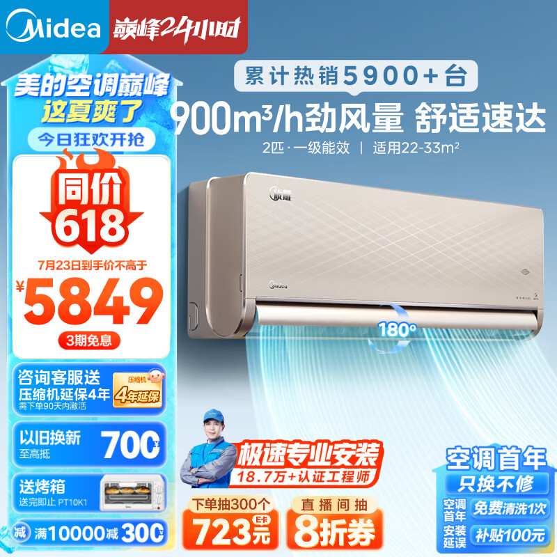 美的(Midea)空调 2匹旋耀 壁挂式空调 大风量客厅商铺挂机 一级能效空调 KFR-50GW/N8MXA1价格:5849.00元!