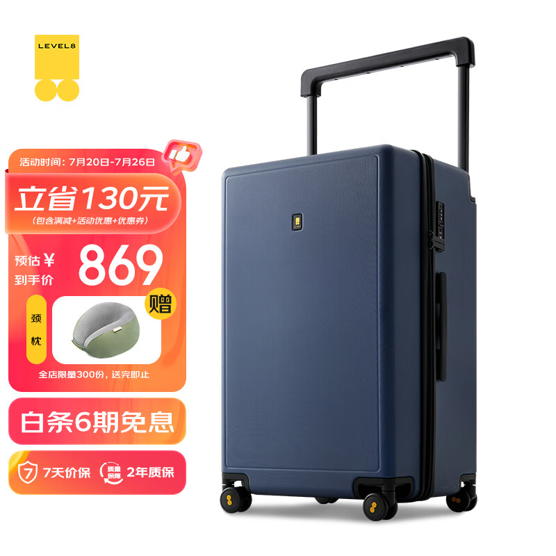 地平线8号(LEVEL8)行李箱 男女密码大容量万向轮26英寸宽拉杆大旅行家PC拉杆箱 蓝色价格:999.00元!