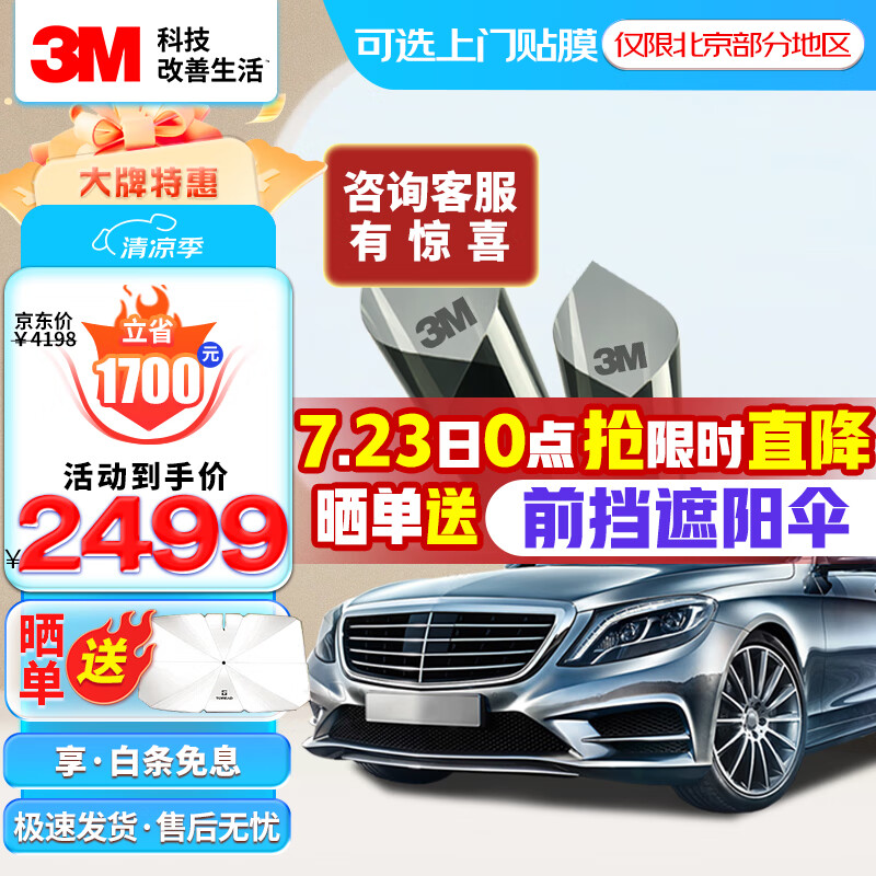 3M汽车贴膜 朗程系列 深色轿车全车汽车玻璃车膜太阳膜隔热膜 包施工 国际品牌价格:4199.00元!