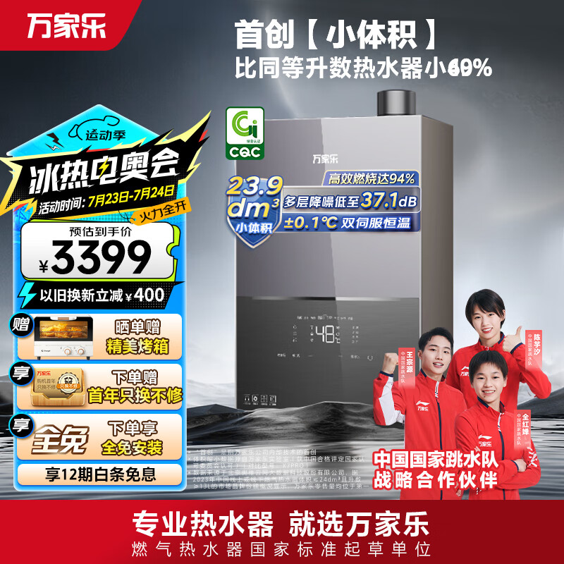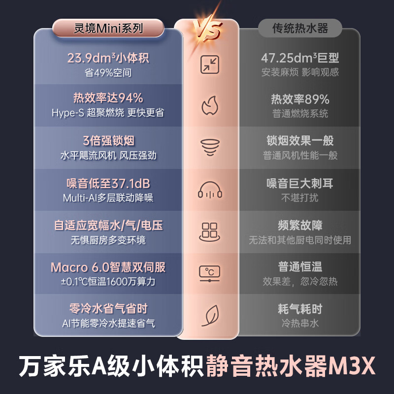 万家乐16升燃气热水器零冷水A级小体积水量伺服器恒温一级静音天然气以旧换新JSQ30-16M3X灵境mini系列价格:3399.00元!