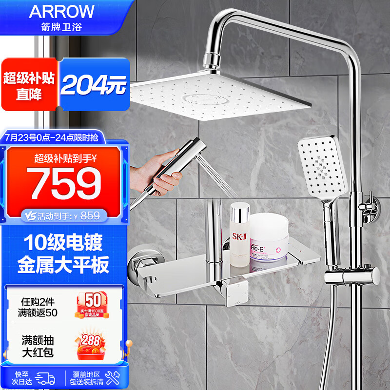 箭牌(ARROW)淋浴花洒套装 自洁淋浴喷头升级下出水 洗澡沐浴易洁手持顶喷 四功能平板自洁花洒3464S价格:963.00元!