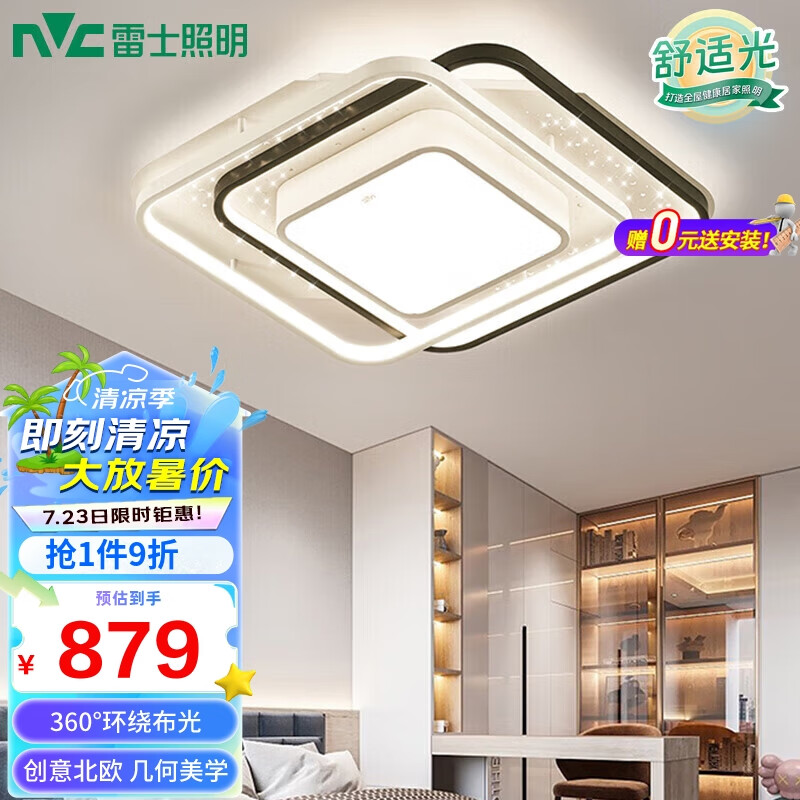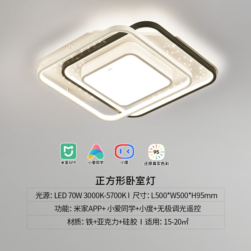 雷士(NVC)简约星空氛围感LED米家智能吸顶灯书房灯饰灯具繁星方灯价格:977.00元!