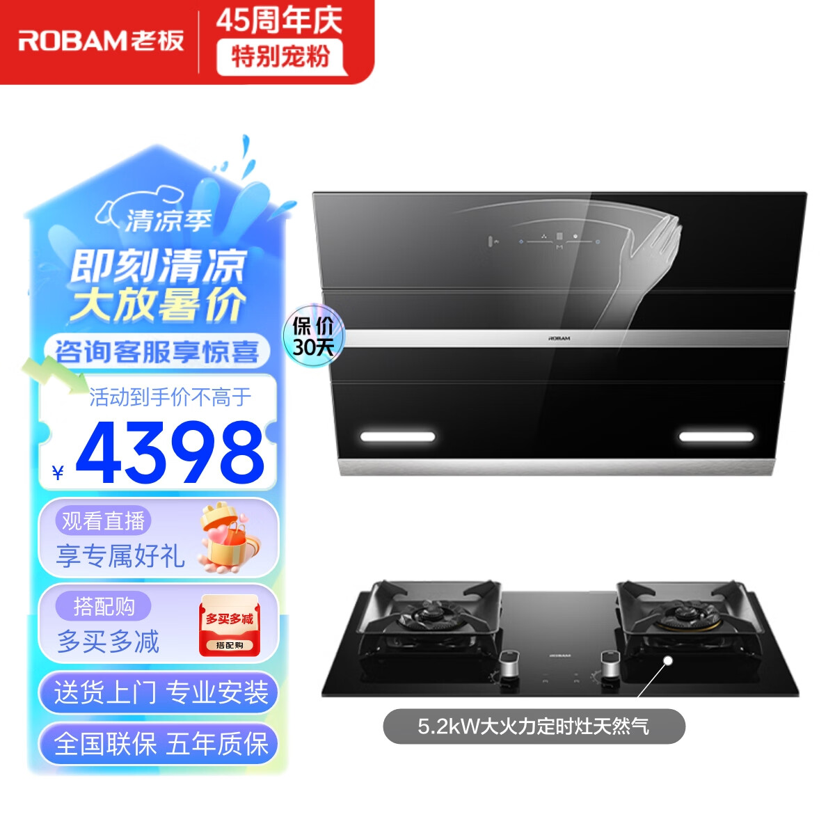 老板抽油烟机烟灶套装免拆洗静音侧吸油烟机21风量燃气灶家用吸油烟机灶具27A3H+57B8A(天然气)价格:4398.00元!