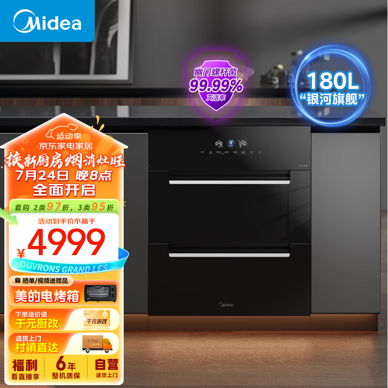 美的(Midea)消毒柜嵌入式家用 厨房餐具碗柜碗筷茶杯茶具刀具消毒一体机 180L三层大升数200Q11银河价格:5499.00元!