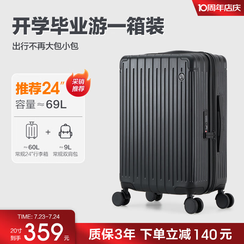 爱华仕行李箱20英寸男小型拉杆箱女万向轮登机箱旅行箱轻便密码箱骑士黑价格:499.00元!