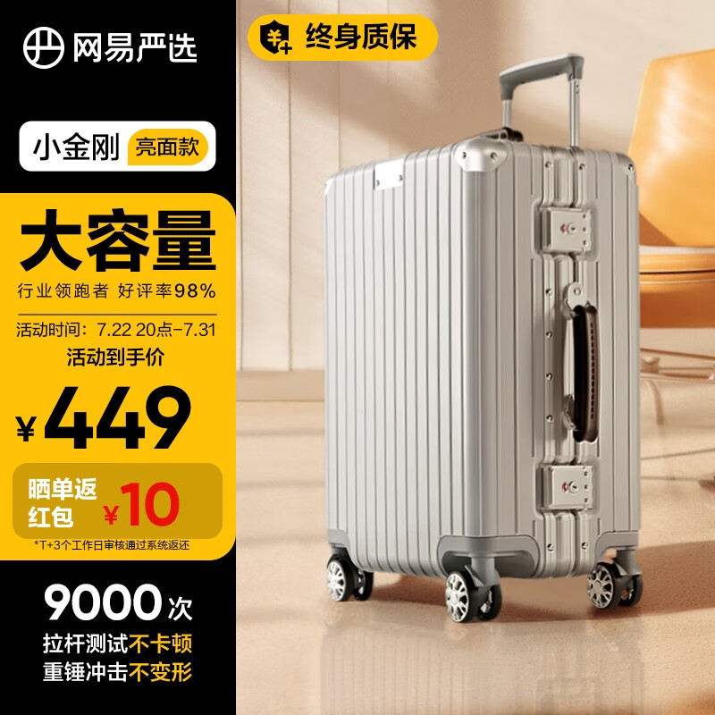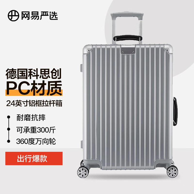 网易严选大容量铝镁框小金刚PC行李箱商务学生拉杆箱升级24英寸亮面太空银价格:489.00元!