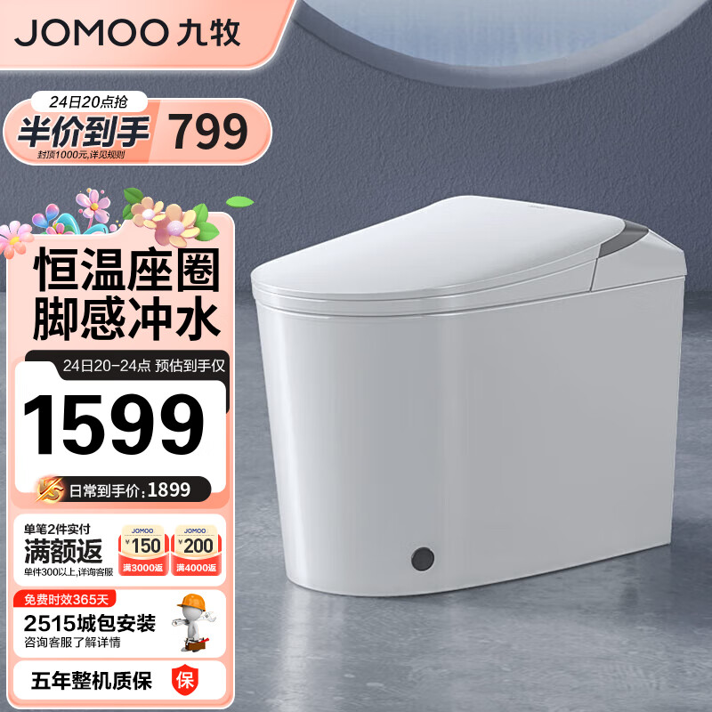 九牧(JOMOO)J11423-1-1/31K-1轻智能智感双冲恒温座圈虹吸马桶坐便器305坑距价格:1899.00元!